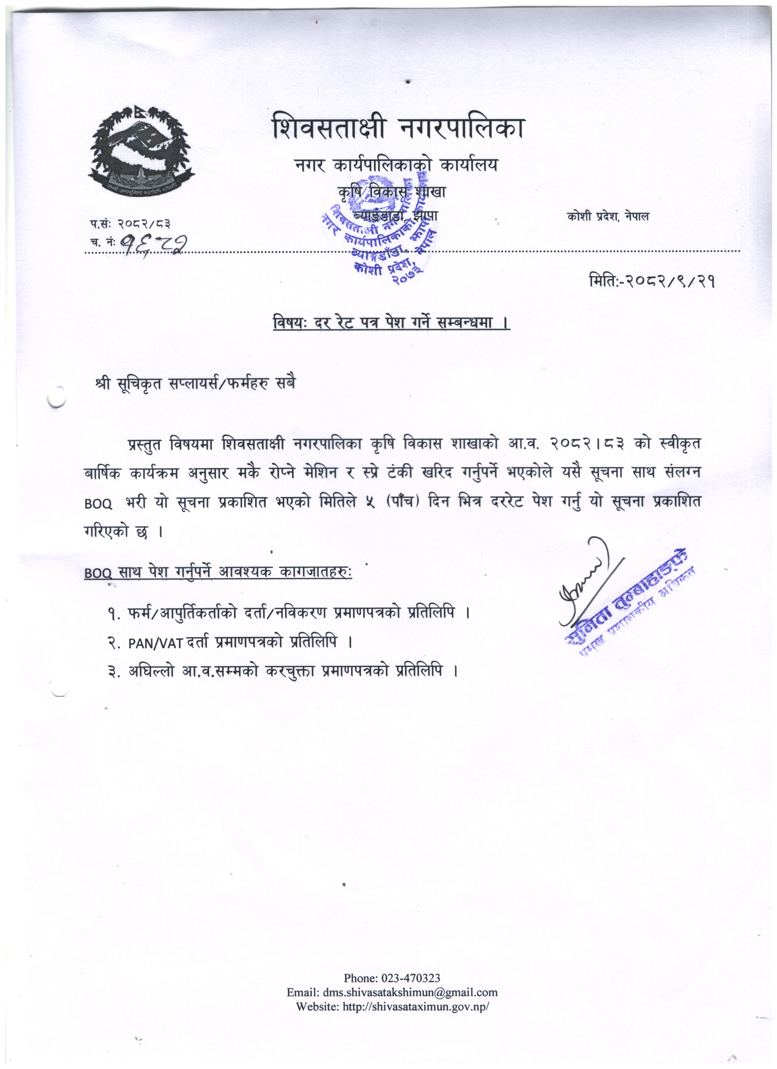 दरभाउ पेश गर्ने सम्बन्धी सूचना ।