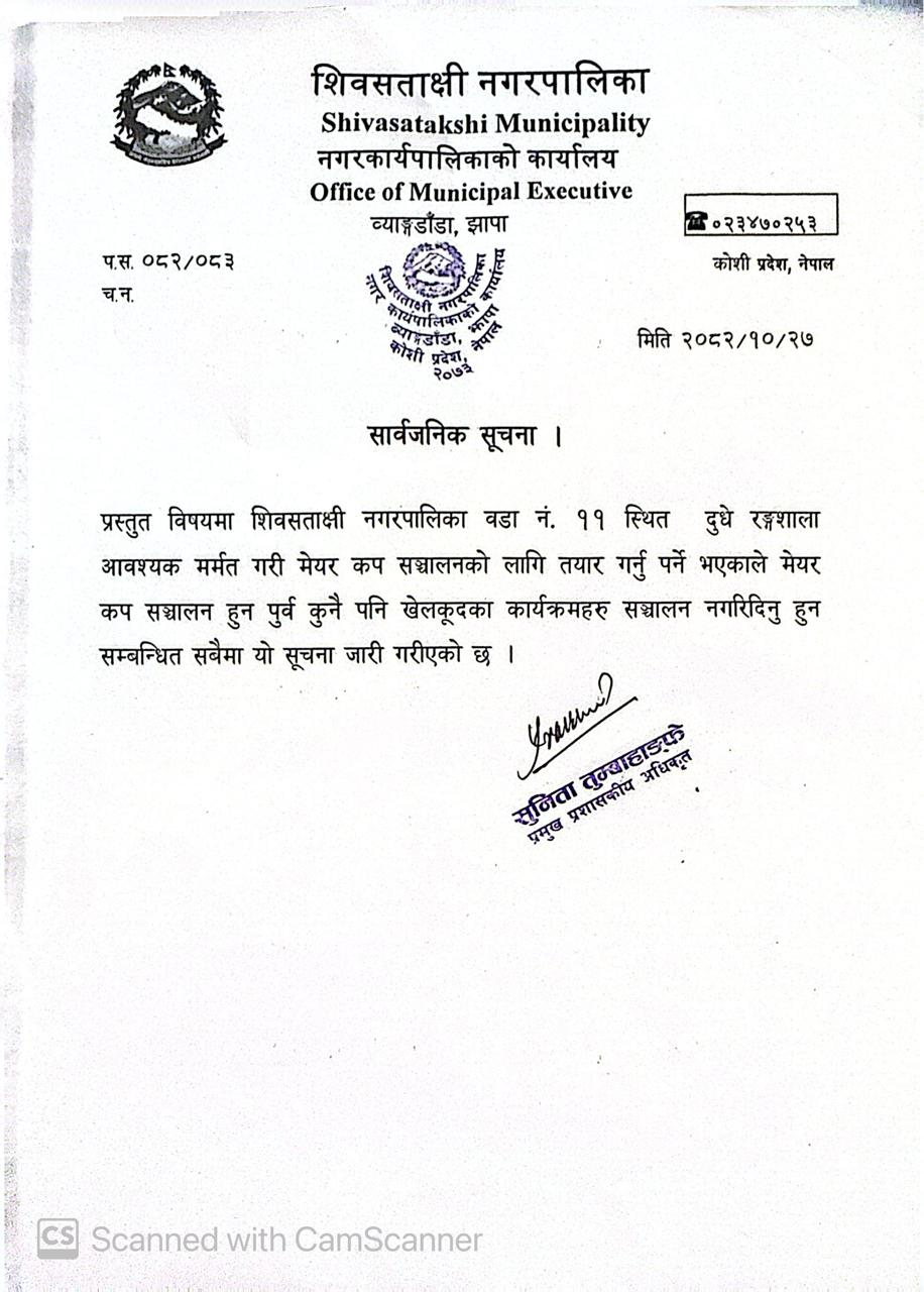 शिवसताक्षी नगरपालिका, नगर कार्यपालिकाकाे कार्यालय