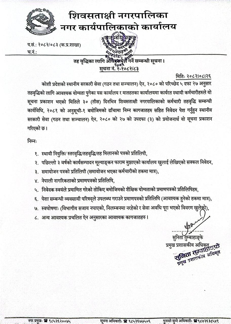 तह वृद्धिका लागि आवेदन पेश गर्ने सम्बन्धी सूचना ।