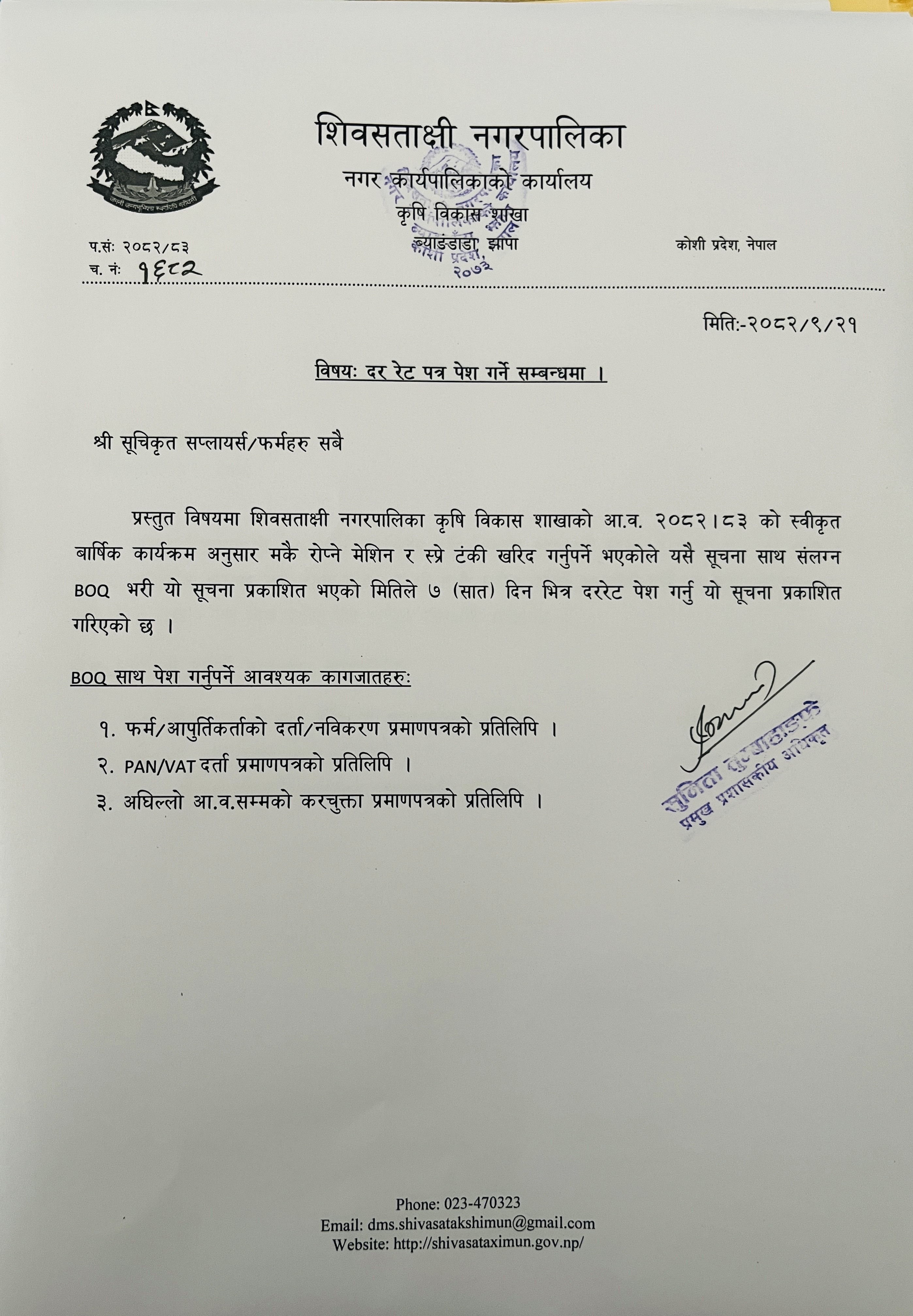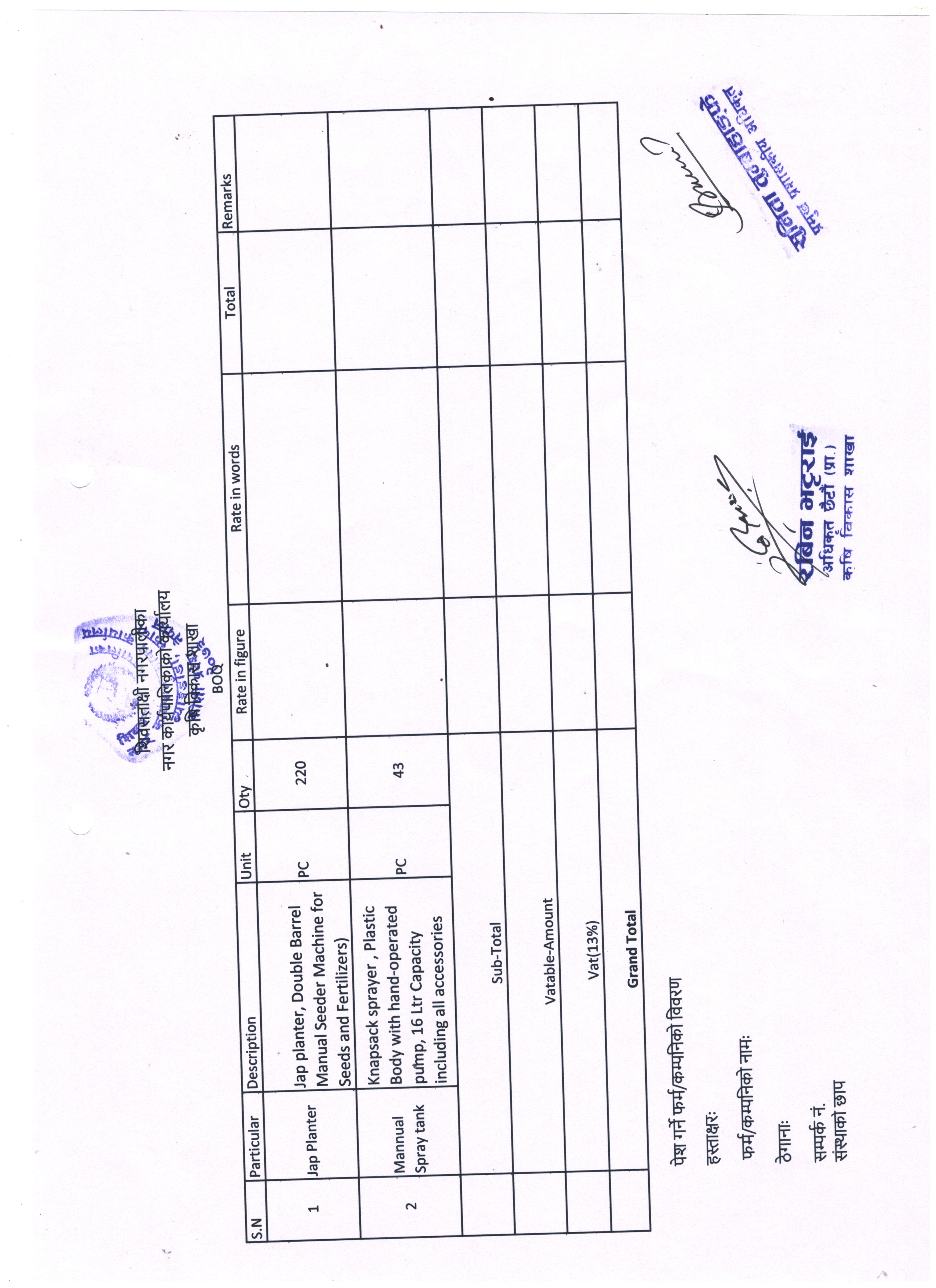 दररेट पेश गर्ने सम्बन्धमा ।