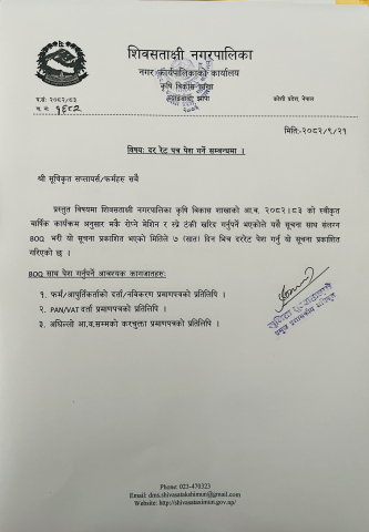 कनकाई तथा कमल खोलाको ढुङ्गा, गिटि सम्बन्धि विधुत्तिय ठेक्का सम्बन्धि सूचना ।