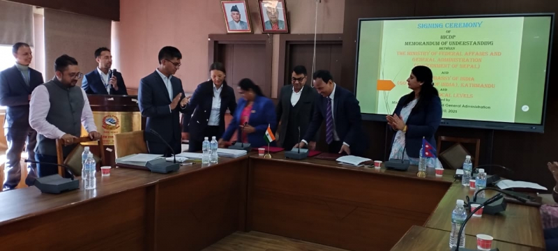 मिति २०८२-७-२४ भारत राजदूतावास, नेपाल संघीय सरकार र शिवसताक्षी नगरपालिका बीच नगरको विकास र समृद्धिका लागि विशेष हस्ताक्षर सम्झौता सम्पन्न भएको ऐतिहासिक क्षणमा- मुख्य संयोजन र पहलकर्ताको रूपमा सक्रिय भूमिका निर्वाह गर्नुहु्दै आदरणीय नगर उपप्रमुख